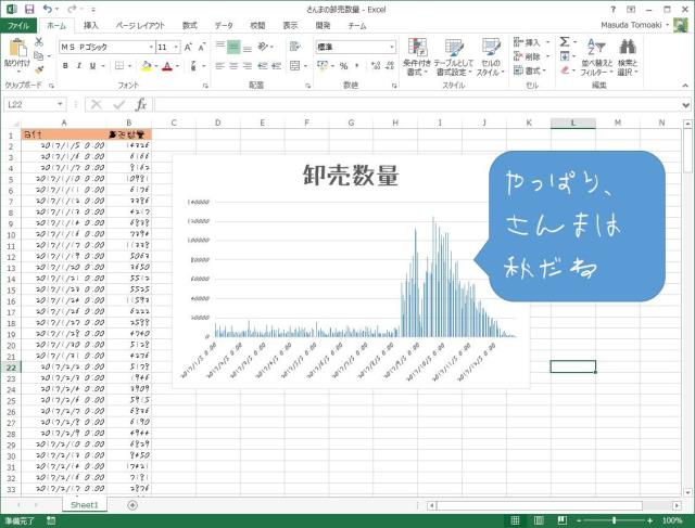 例えば、去年1年間の「さんま」の取扱量をみてみましょう。