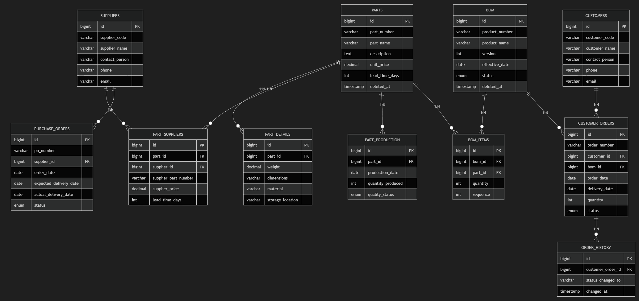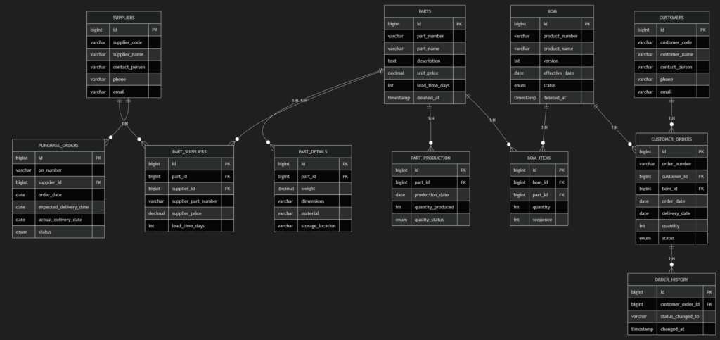 part_number VARCHAR(64) UNIQUE NOT NULL,