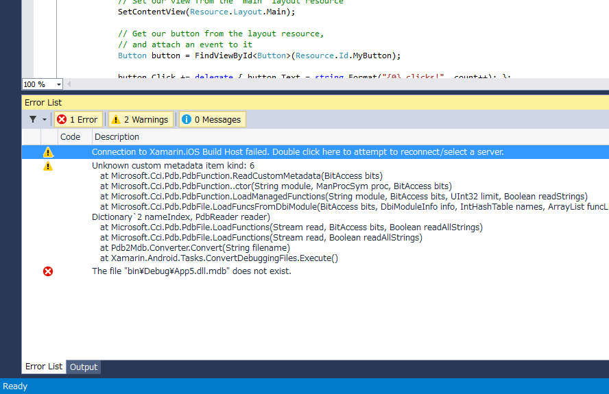 ちょっと注意しなければいけないのは、MvvmCross では ViewModel と ViewController が 1対1 じゃないと駄目なようです。実行時に TipViewModel が二つ以上の ViewController に設定されている、とエラーがでます。なので、仕方がないので TipViewModel2 という同じ中身のクラス(継承しているだけ)を使っているのですが。同じ ViewModel を複数の View に対応しても良いと思うのですが、ちょっとこの動きはよくわかりません。