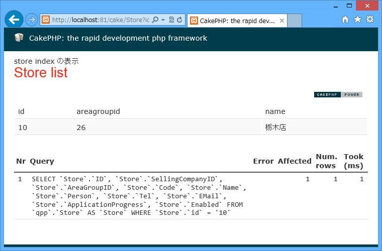 パラメータの部分は、$this->params[‘url’][‘id’] のように取得できる。